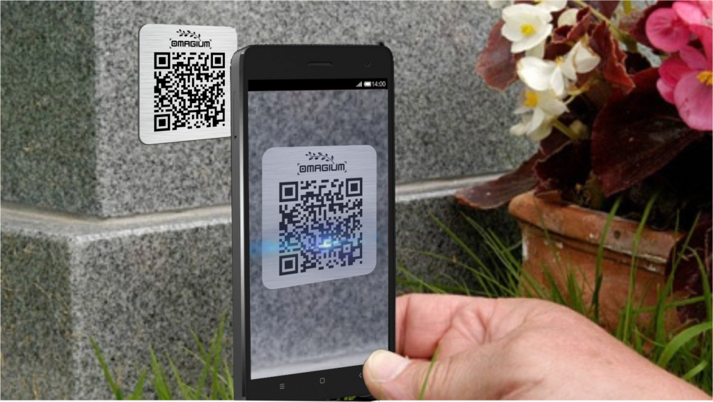 Există opțiunea ca Memorialele online Omagium să fie însoțite de o plăcuță inscripționată cu un cod QR unic ce se fixează pe monumentul funerar și care facilitează accesul la Memorial prin simpla scanare cu un smartphone chiar la locul de odihnă veșnică al persoanei dragi dispărute, oferind, astfel, vizitatorilor un prilej de reflecție, de aducere aminte și de reculegere.