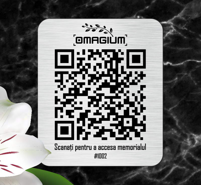 Dacă optați pentru un pachet Omagium ce include și plăcuța cu cod QR, oferiți tuturor celor apropiați care vizitează mormântul persoanei dispărute un prilej de comemorare, iar vizitatorilor care nu au fost apropiați de cel dispărut, ocazia de a afla mai multe lucruri despre viața acestuia.